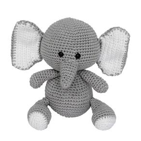 Entre na última moda e invista nesse bichinho de crochê, conhecido também como Amigurumi, que é produzido artesanalmente com material de alta qualidade. Com esse amiguinho a diversão está garantida, além de ser um toque decorativo que irá encantar a todos que entrarem no quartinho do bebê. Dados Técnicos Elefante de crochê produzido com técnica amigurumi feito em material 100% algodão e enchimento em fibra siliconada. Medidas Largura: 20 cm Altura: 17 cm Profundidade: 11 cm Atenção Este produto é fabricado manualmente, portanto pode sofrer alteração de tamanho e tonalidade entre cada peça produzida.