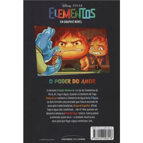 Nesta graphic novel, embarque na história da mais recente animação da Pixar, Elementos, e leve-a para onde quiser! A vibrante Cidade Elemento é habitada pelos Elementos da Terra, Ar, Fogo e Água. Dentro desse mundo mágico, vive a Elemento de Fogo, Faísca Luz, que acaba conhecendo e se tornando amiga do Elemento de Água, Gota D?Água. Essa amizade é algo que Faísca sente a necessidade de esconder de seus pais tradicionalistas, Brasa e Fagulha, pois, afinal, todos dizem que fogo e água não combinam, não é mesmo? Mas um desastre que ameaça toda a Vila do Fogo acaba por revelar a verdadeira natureza de Faísca. É nesse momento crítico que ela passa a entender quem realmente é e, o mais importante, começa a mostrar aos seus pais que fogo e água podem, sim, formar uma combinação harmoniosa.