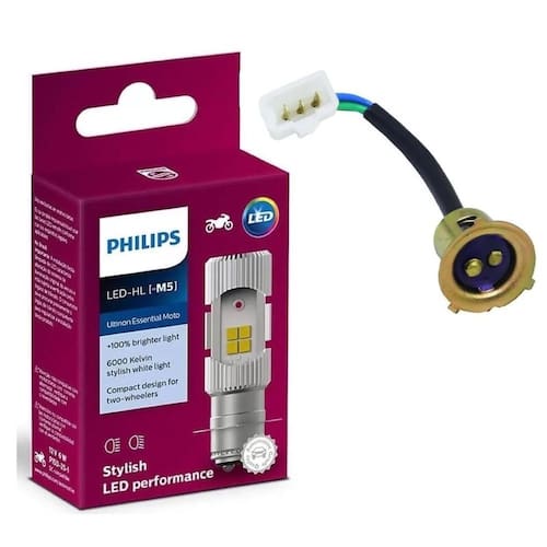 itens inclusos: 01 lampada led - 01 soquete lampada farol compativel com: com motos corrente contínua dc marca fabricante produto: philips linha: led ultinon para motocicletas modelo: lampada soquete m5 6500 k