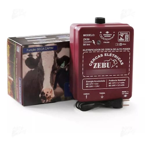 DescriçãoInformações técnicasAlimentação: 127v/220v automáticoRaio de ação: 3.000 metrosEnergia acumulada:127v 2,60 joules220v: 1,94 joulesEnergia liberada:127v: 1,50 joules220v: 1,30 joulesConsumo de energia elétrica:127v: 0,088kw/dia220v: 0,072 kw/diaTensão de saída sem carga: 9kvIntervalo entre pulsos regulável: 1,05 a 2,2 segundos Características:Com regulagem de cadência;Desviador de raios de baixa intensidade;Exige, no mínimo, duas hastes para aterramento. Saiba mais, clique aqui.Código do produto zebu: 3531-9Ncm: 85437092Código de barras zk50 aut: 7898215044017Dimensões do produto: 25,8 x 17,5 x 11 cmPeso do produto: 1,042kg