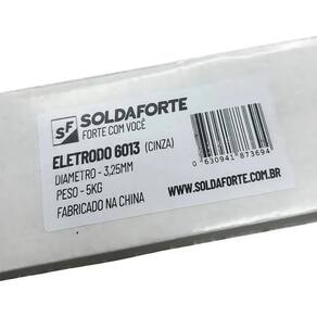 ESPECIFICAÇÕES TÉCNICAS: :: Marca: SOLDAFORTE :: Modelo: 6013 - 3,25MM HEBEI :: Corrente A : 50 - 70 :: Polaridade: CC + ou CA