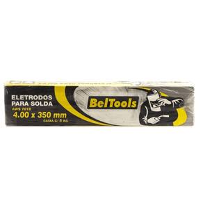 Eletrodo AWS7018 4,00 x 350mm 5kg BeltoolsPossui alto rendimento na deposição e resistência a fadiga.Indicação:Indicado para os mais variados tipos de aplicações em todos os tipos de juntas e em todas as posições. Proporciona soldagem com baixo nível de respingos e cordões com excelente acabamento. Utilizado em estruturas metálicas e ponteamentos em geral. Os eletrodos, de um modo geral, não devem ficar armazenados diretamente no chão ou expostos à umidade. Para um mínimo de conservação, devem ser armazenados em cima de madeiras ou em prateleiras. No momento do uso, é muito importante a utilização de estufas (cochicho).Diâmetro: 4,00mm.Posições de soldagem: Plana, horizontal, vertical ascendente, vertical descendente, sobre-cabeça e angular.Faixa de corrente: 140 A - 195 A.Tensão: 20 V a 30 V.Tipo de revestimento: Básico.Código: 62014Marca: Beltools