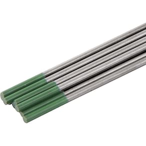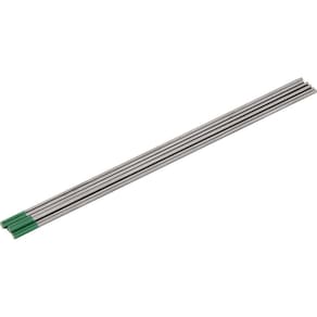 Conteúdo da embalagem1 Estojo com 10 eletrodos de tungstênio Aplicações e dicas de usoIndicado para o processo de solda TIG. Eletrodo ponta verde, por ser puro, é indicado para soldar alumínio. Destaques e diferenciaisUtilizado com o equipamento adequado, consegue-se um ótimo rendimento e acabamento na soldagem de alumínio. DETALHES TÉCNICOS Diâmetro do eletrodo de tungstênio: 3/32 - 2,4 mm Comprimento do eletrodo de tungstênio: 6 - 150 mm Cor da ponta do eletrodo: Verde Percentual de tório: Isento de Tório Atende norma: AWS EWP Marca: Não Informado