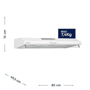 Especificações Técnicas=CONTROLE: Botões FILTRO: Filtro de carvão ativado e Filtro metálico lavável ILUMINAÇÃO EMBUTIDA: Sim LUZ INDICADORA DE FUNCIONAMENTO: Sim CAPACIDADE DE SUCÇÃO: 280 (m³/h)(IEC) VELOCIDADES: 3 Velocidades VAZÃO LIVRE: 390 (m³/h) GARANTIA DO PRODUTO: 1 Ano GARANTIA DOS ACESSÓRIOS DO PRODUTO: Não se aplica POTÊNCIA: 165W MODELO: DE80B</BR>Peso Líquido (kg)=7,4 Kg</BR>Dimensões (A x L x P)=140 x 800 x 495 mmVendido e entregue por Friopeças