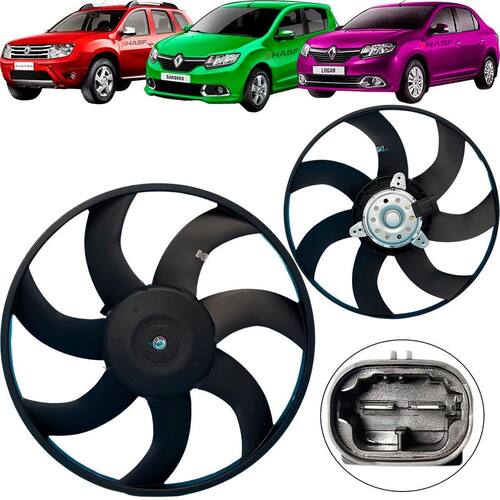 Eletroventilador sem defletor Sem resistência Conector de 2 pinos Hélice de 7 pás com 385mm Voltagem de 12v Sentido horário Motor 102mm 3 furos de fixação c/rosca