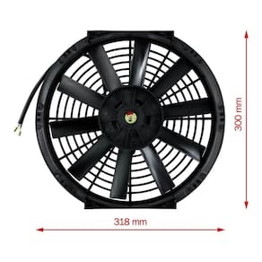 Dimensoes Aprox. : Gerais: Altura h : 300mm x Comprimento l : 60mm x Largura b : 318mm Hélice: Diâmetro : 12' 304,8mm Conectores : 2 Sentido de Rotacao : Anti-Horário Tensao : 24V Quantidade de Pas : 10 Pás Retas Aplicabilidade : Aplicação: Universal