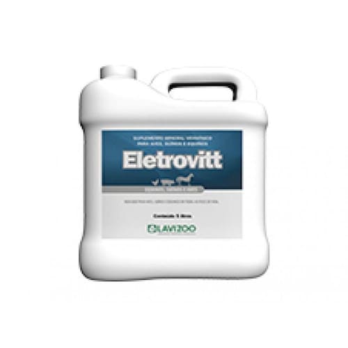 Eletrovitt Lavizoo - 5 LitrosSuplemento pré e pós exercícios à base de eletrólitos, enriquecido com vitaminas e minerais.Modo de Usar:Equinos Adultos: 20 ml / diaPotros: 10 ml / diaFabricante: LavizooProduto isento de registro no Ministério da Agricultura, Pecuária e Abastecimento.