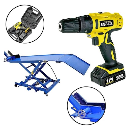 Elevador Hidropneumático e Parafusadeira Furadeira Impacto Bateria 12V EVALD