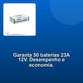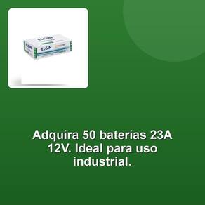 Elgin Bateria Alcalina 23a 12v Pct /50 Uni DESCRIÇÃO DO PRODUTO A Elgin Bateria Alcalina 23A 12V é a escolha ideal para equipamentos que requerem descargas de energia rápidas e fortes. Com 50 unidades por embalagem, você pode economizar tempo e dinheiro sem comprometer a qualidade. Além disso, essas baterias são aprovadas pelo INMETRO e são completamente livres de cádmio e mercúrio, tornando-as uma excelente escolha ambiental.