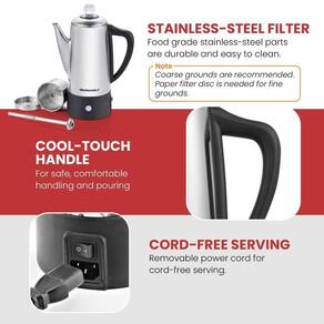 Desfrute de café ou chá quente e saboroso com a Elite Gourmet Cafeteira Percoladora, capaz de preparar até 6 xícaras em menos de 7 minutos. Com função de manter aquecido por 2 horas, ela é perfeita para servir bebidas quentes ao longo do dia, sem perder o frescor.
