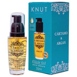 ========================================================================================= Elixir Capilar Knut Cártamo e Argan 35ml Óleo capilar para todo o tipo de cabelo. Knut elixir Oil Cartamo & Argan é para cabelos sedosos, macios e brilhantes instantaneamente. Knut Elixir Oil Cartamo Argan ajuda a recuperar cabelos danificados, melhorando seu aspecto com uma só aplicação. Tem toque seco, ajuda na acentuar cachos e a eliminar o frizz, deixa maleável e sedoso. Conselho de Aplicação O Elixir de Knut tem uma aplicação multiuso: Como pré-tratamento: coloque de 5 a 10 gotas na palma das mãos, esfregue-as e aplique no cabelo massageando o elixir no comprimento dos fios. Deixe agir de 0 a 20 minutos antes de lavá-los com sua linha KNUT favorita e sinta maior maciez. Como leave-in e protetor térmico: coloque de 2 a 5 gotas na palma das mãos, esfregue-as e aplique no cabelo úmido antes da escova. Como finalizador e reparador de pontas: coloque de 2 a 5 gotas na palma das mãos, esfregue-as e aplique nas pontas dos fios, após escova, chapinha ou a qualquer momento nos cabelos secos naturalmente para controle do frizz e brilho, finalizando seu estilo. Como pré-tratamento químico ou coloração: coloque de 5 a 10 gotas na palma das mãos, esfregue-as e aplique no cabelo com massagem suave antes dos procedimentos de química ou coloração, sem enxaguar antes. Como hidratação extra: coloque até 5 do elixir na sua máscara de tratamento preferida e use como de costume, respeitando o tempo de aplicação da máscara. ========================================================================================= Anúncio composto por: