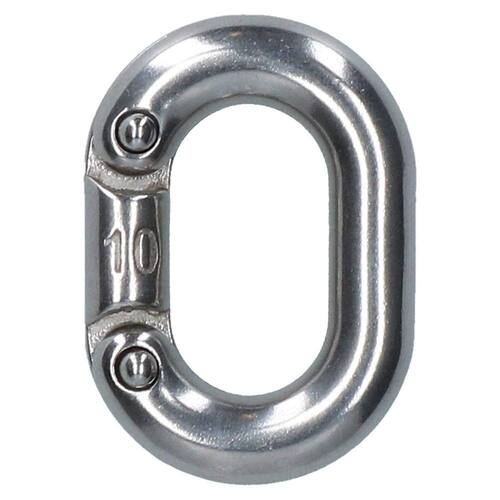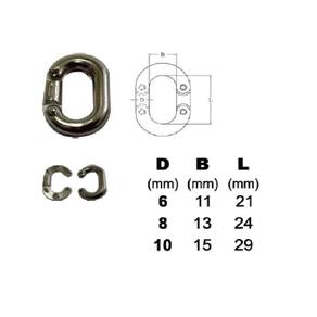 Elo conector de corrente em aço inox 10mm Elo conector para emenda/conexão de corrente galvanizada ou em aço inox, elo é construído em aço inox 316 com precisão exata din 766. Ideal para utilização em embarcações que utilizam guinchos elétricos para ancoragem quando necessário emendar duas ou mais correntes.