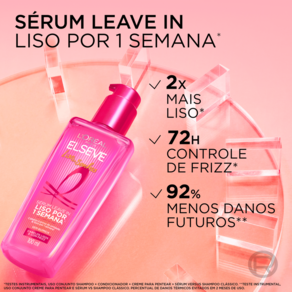 O Sérum Capilar Elseve Liso dos Sonhos protege os fios contra umidade e frizz, garantindo um liso impecável e duradouro. Sua tecnologia termoativada cria uma película protetora que sela a fibra capilar, mantendo os cabelos alinhados, sedosos e livres de frizz por até 1 semana, mesmo após várias lavagens.