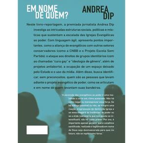 Um trabalho de fôlego sobre a mistura explosiva de política e religião na vida nacional. Neste livro-reportagem, a premiada jornalista Andrea Dip investiga as intricadas estruturas sociais, políticas e místicas que sustentam a escalada das Igrejas Evangélicas ao poder. Com linguagem ágil, apresenta pontos importantes, como a aliança de evangélicos com outros setores conservadores (como a CNBB e o Projeto Escola Sem Partido), o ataque aos direitos de grupos identitários (com as chamadas “cura gay”, “ideologia de gênero” e projetos antiaborto), a ocupação de um espaço deixado pelo Estado e o uso da mídia. Além disso, busca identificar, sem preconceitos, quem são as pessoas que levam adiante o projeto evangélico de poder, como se articulam e em nome de quem levantam suas bandeiras. Prefácio de Marina Amaral e orelha de Fernando Molica. Marca: CIVILIZAÇAO BRASILEIRA