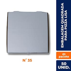 Caixa para pizza quadrada n° 35 com 50 unidades_x000D_ _x000D_ _x000D_ Contém: 50 unidades_x000D_ Dimensões: 35cm x 35cm x 4cm_x000D_ Detalhe: Lisa_x000D_ _x000D_ Embalagem quadrada para pizza é fabricada de papelão ondulado com uma face na cor branca outra na cor parda. Impressão padrão em duas cores. Uma embalagem que diferencia pelo baixo custo e praticidade._x000D_ _x000D_ _x000D_ _x000D_ A Tamarozzi Embalagens atua no mercado desde 1995, e tornou-se referência em embalagens descartáveis. Hoje comercializamos um mix de embalagens que buscam valorizar seu produto, tendo como compromisso a qualidade, a confiabilidade de seus produtos e o respeito. A Tamarozzi Embalagens conta atualmente com representantes em todos os Estados do Brasil e uma rede de aproximadamente 3.000 distribuidores. Marca: TAMAROZZI