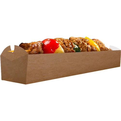 Embalagem Caixinha para Espetinho 1.000 unidades Kraft Modelo: kraft Material: cartão triplex ou duplex Klabin Dimensões: 3,8cm altura x 4,7cm largura x 20cm comprimento Itens inclusos: 1.000 unidades Ideal para usar no delivery, foodtruck, lanchonete ou evento, nossa embalagem para espetinho é muito importante para o sucesso do seu produto no mercado. A importância da embalagem está em sua função, uma vez, que ela é o principal meio de fazer a conexão entre o produto e o seu cliente. Quem nunca comprou um produto apenas pela embalagem. Além de ser bonita, nossa caixinha para espetinho possui atributos que serão perceptíveis ao seu cliente, como a praticidade, a conveniência e a facilidade de consumo do seu produto. Também traz segurança, higiene e conforto para o seu cliente, além de demonstrar proteção ao seu produto. Marca: Pdv Print