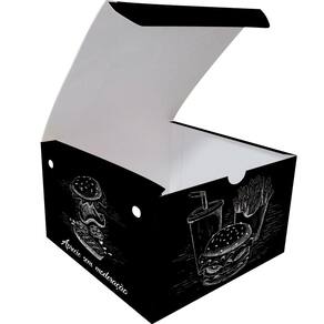 A Caixinha Box Embalagem Hamburger Gourmet é perfeita para você que busca uma embalagem prática e funcional para seus hambúrgueres gourmet. Com capacidade para 100 unidades, ela é ideal tanto para consumo imediato quanto para delivery.