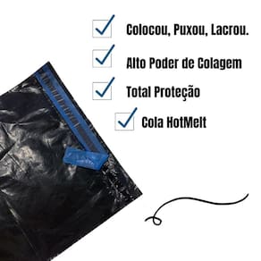 Medidas Comprimento: 32cm x Largura: 40cm Lacre adesivo Hot Melt Cor Interno: Preto Cor Externa: Preto