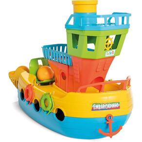 Cores e detalhes que encantam os bebês, Peças desencaixáveis para construir a brincadeira, Acompanha 2 bolas que correm pelo barco, despertando os sentidos dos pequenos.