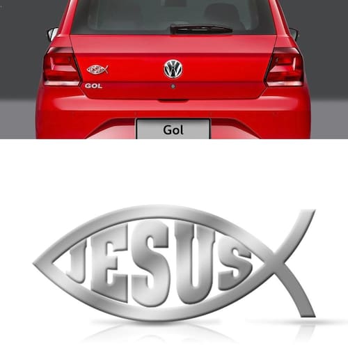 Emblema Universal Decorativo Peixe Jesus Cromado Alto Relevo Cristão