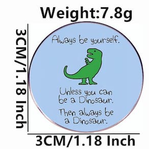 Material: liga. Tamanho: 3x3 cm Peso: 7,8 g Quantidade: você receberá toda a quantidade de peças da mesma imagem principal. Mostre um design exclusivo de desenho animado — apresenta um fundo azul redondo com um divertido dinossauro verde e uma citação motivacional, tornando este broche elegante e significativo. Material de liga durável — Feito de liga de alta qualidade com acabamento esmaltado suave para uso duradouro e cores vibrantes. Tamanho compacto e leve — Medindo 3 x 3 cm e pesando 7,8 g, este broche é confortável de usar em roupas ou anexar a acessórios. Uso versátil — Funciona como alfinetes de blusa, broche de lapela ou crachá decorativo para jaquetas, camisas, mochilas, chapéus ou roupas de moda casual. Colecionável moderno — Com sua frase divertida e tema de dinossauro, este broche é uma peça criativa para colecionadores de broches esmaltados e amantes da moda.