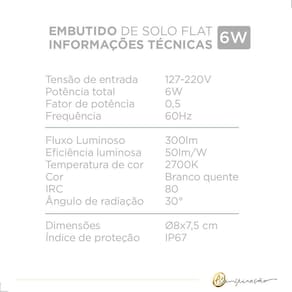 Os embutidos de solo são recomendados para instalação em escadas, corredores, garagens, jardins, tetos e deck de piscinas. Pode ser instalado em ambientes internos e externos.