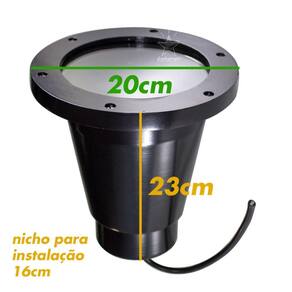 Este embutido de solo pode ser instalado em qualquer tipo de piso, externo ou interno, é vedado para não entrar agua. Utiliza 1 lâmpada PAR38 com soquete E27, não acompanha lâmpada.