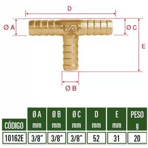 Descrição * Esta peça, feita de metal, foi projetada com três aberturas de 3/8 de polegada em cada extremidade. * Este Tê é versátil e pode ser utilizado em diversas aplicações.