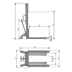 Conteúdo da embalagem: 1 Empilhadeira Manual 2,0T 690X1150mm Altura 1,6M EMP2016 Bovenau