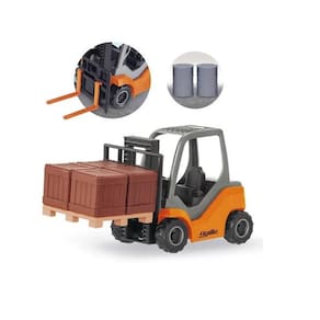 Indicado para crianças à partir de 03 anos; Além da empilhadeira, na embalagem contem, 1 pallet, 4 caixinhas e dois tambores; Produzido em plástico e material emborrachado; Comprimento considerando o garfo 18 cm