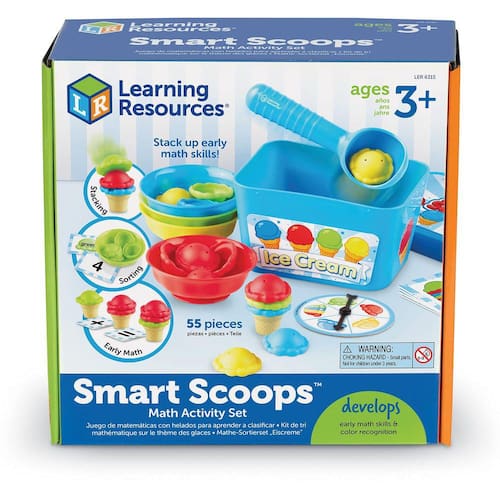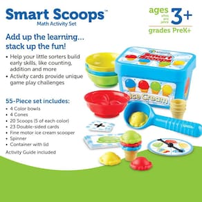 Recursos de aprendizagem O conjunto de atividades matemáticas Smart Scoops, brinquedos para empilhar e classificar, desenvolve habilidades matemáticas precoces, 55 peças, a partir de 3 anos