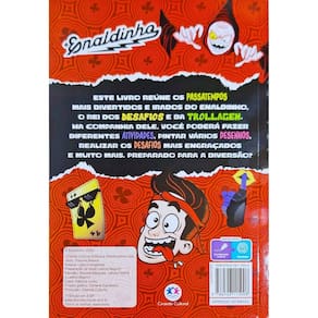 Sinopse Este livro reúne os passatempos mais divertidos e irados do Enaldinho: o rei dos DESAFIOS e da TROLLAGEM. Na companhia dele, você poderá fazer diferentes atividades, pintar vários desenhos, realizar os desafios mais engraçados e muito mais. Preparado para a diversão?