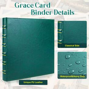 Encadernador de cartas colecionáveis WOT I Deluxe, 540 bolsos, capas de fichário colecionáveis, porta-cartões de dupla face, estojo de transporte para cartão de beisebol, cartão de futebol - verde -?Encadernador de cartas de luxo?A linha clássica e dourada da capa mostra um estilo retrô e o couro PU espesso combinado com cores discretas, o encadernador de cartões WOT I mostra seu gosto e oferece uma resistência admirável. Presentes preciosos para você ou seus amigos colecionarem cartões. -?Grande espaço de armazenamento?O encadernador de cartões WOT I de 9 bolsos vem com 540 bolsos para cartões, incluindo 30 capas removíveis (bolso de dupla face). Ele guardará e protegerá mais de seus cartões valiosos e queridos. Com tamanho de 3,6 x 2,7 polegadas, cada bolso comporta até 2 1/2 x 3 1/2 cartões e outros cartões padrão, garantindo que seus cartões favoritos sejam armazenados com segurança e bem organizados. -?Durável em uso?O design de carregamento superior das capas para cartões é propício para a inserção do cartão e evita que os cartões caiam ou se infiltrem na bebida. Páginas internas claras não afetarão a navegação e seus materiais resistentes ao desgaste podem ser utilizados repetidamente. Detalhes abrangentes. -?Amplas aplicações?As capas de cartas colecionáveis WOT I são adequadas para todos os cartões colecionáveis de tamanho padrão, como cartas de futebol, cartas de beisebol, cartas de baralho, melhores trunfos, cartas de jogo, cartas de ataque, cartas MTG, cartões PECS, cartões proxy, fotos de 3 polegadas, cupons, cartões de visita, cartões de crédito, vales-presente ou outros cartões, etc. Ótimas para armazenamento e exibição de cartões. -?Decore sua casa?Sua mesa e estante de livros serão decoradas com o encadernador de cartas colecionáveis WOT I deluxe. Também é um ótimo presente para suas famílias, parentes, amigos e parceiros de negócios.