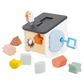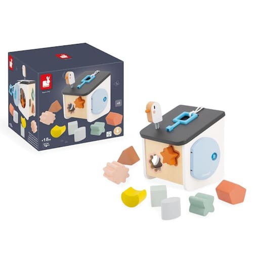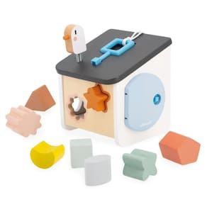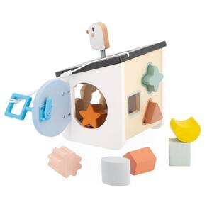 Com jeitinho de casinha e um passarinho simpático no telhado, essa lúdica estrutura de madeira traz oito peças coloridas para encaixar em seus contornos. Além da brincadeira de formas, as crianças podem abrir o telhado ou usar a chave para recuperar as peças, incentivando a curiosidade e a coordenação. Um clássico que encanta pela simplicidade e convida à exploração com segurança, cores suaves e muita imaginação envolvida.
