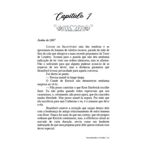 Eles o chamam de Conde Inatingível... Muitos buscam seu favor, homens e mulheres, mas poucos vislumbram o que está por trás do exterior indiferente do Conde de Brantford. Ela era a mulher que todos queriam... Rose Hardwick era a debutante mais cobiçada de Londres até que um escândalo tocou sua família e a transformou em uma pária social. Só ele tem o poder de ajudá-la... Rose está determinada a provar que seu pai é inocente do crime de traição, mas primeiro ela deve convencer o conde inatingível a ajudá-la. Quando as circunstâncias os forçarem a ficar mais próximos, ela será capaz de encantá-lo a ponto de derreter o gelo que envolve seu coração? Encantando o Conde é um Romance Histórico da Regência, que engloba amor não correspondido, casamento de conveniência, agente secreto, herói protetor. Marca: Leabhar Books Editora
