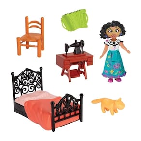 Explore o mundo mágico de Encanto da Disney com o Mirabel Room Playset. Este playset foi projetado para se parecer com o quarto de Mirabel no filme e vem com uma boneca Mirabel e 6 acessórios para contar histórias, incluindo sua cama, mesa de máquina de costura, acordeão e o brinquedo de onça que ela dá de presente para seu primo Antonio. Divirta-se com o Mirabel Room Playset, ele possui várias ativações para você brincar!