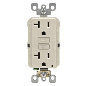 - Enchufe Dúplex GFCI de Autoevaluación Leviton de 20 Amperios y 125 Voltios, Color Almendra Claro
