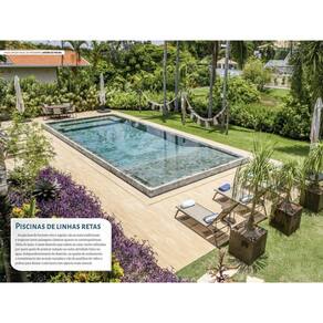 Fazer jardins para o entorno de uma piscina demanda técnica e bom gosto. Na maior parte das residências é o ponto central do lazer e tem uma infinidade de possibilidades. No volume Jardins de Piscina estão 101 imagens com soluções de deques, SPA, locais para espreguiçadeiras e as plantas mais indicadas que você pode usar para ter o máximo de lazer e conforto. Tanto para a piscina da sua casa como para a dos seus clientes.