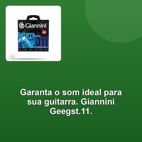 Nossa marca, Giannini, se compromete a fornecer produtos de alta qualidade que atendem às necessidades específicas dos músicos. Nossa equipe se esforça para que cada item seja entregue rapidamente e eficientemente. Acreditamos que a qualidade não é apenas uma característica, mas um reflexo do nosso compromisso com a satisfação de nossos clientes. Escolha o melhor para sua guitarra e experimente o som que você sempre deseou. Aqui está a descrição de produto estruturada e atraente para o produto Encordamento Guitarra Giannini Geegst.11 0.011: