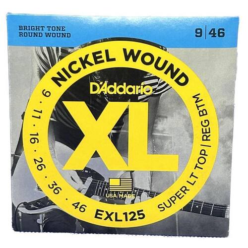 - Modelo Nickel Wound - EXL125 - Tensão 09 - Super Light Top Reg BTM - Contém 6 cordas Marca: D'Addario Xl (Made In Usa) Ean: 7806126781761