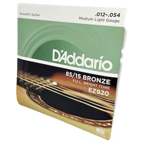 Somos Distribuidores autorizados A linha de cordas D'Addario 012 Bronze vão te surpreender com o brilho no som, sustain e durabilidade. Proporcionam um timbre perfeito por músicos em todo o mundo. - Modelo EZ 920 - Tensão 0.12 - Média Alta - Contém 6 cordas de aço - Presas com bolinhas coloridas Marca: Não Informado