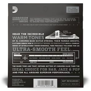As cordas D Addario Chromes Flat Wound Bass para contrabaixo são famosas por sua pegada macia e excelente timbre. As cordas são enroladas utilizando-se uma fita de fio achatado e então polidas, obtendo-se desta forma uma superfície incrivelmente lisa. As Chromes produzem um timbre grave e profundo que as tornam a melhor escolha em cordas lisas para músicos de Jazz, R&B e Pop.Unidades por Embalagem:1