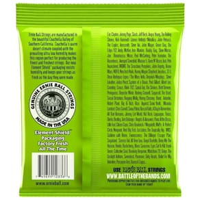 As cordas Ernie Ball são usadas por músicos e bandas como Luiz Carlini, Edu Ardanuy, Marco Tulio, Tomati, Daniel Piquê, Italo Junqueira, Roberto Torao, Eric Clapton, Jimmy Page, Slash, Jeff Beck, Angus Young, The Rolling Stones, Kirk Hammett, James Hetfield, John Petrucci, The Eagles, Aerosmith, Steve Vai, John Mayer, Green Day, The Edge, Andy McKee, Iron Maiden, Buddy Guy, Steve Morse, Joe Bonamassa, Muse, Paul McCartney, Peter Frampton, The Raconteurs, Avenged Sevenfold, Maroon 5, Guns N’ Roses, Tool, Pete Townshend, MGMT, The Smashing Pumpkins, John Fogerty, Bruno Mars, NOFX, Nine Inch Nails, Kenny Wayne Sheperd, Incubus, 311, Omar Rodriguez-Lopez, Dropkick Murphys, Steve Lukather, Judas Priest, System of a Down, Paul Gilbert, Albert Lee, Counting Crows, Blink 182, Spinal Tap, The Strokes, Brett Dennen, Pennywise, Depeche Mode, Rodney Crowell, Sugarcult, The Used, Social Distortion, Flogging Molly, Kenny Chesney Band, Anberlin, Robert Plant, Big & Rich, Rise Against, Sonic Youth, Miranda Lambert, Chris Cornell, Snow Patrol, Rascal Flatts, A Day to Remember, All That Remains, Jimmy Eat World, Kid Rock, Lagwagon, Thrice, Dierks Bentley, Tom Delonge, Panic At the Disco, Little Feat, Citizen Cope, Chris Broderick, MxPx, A Perfect Circle, Nonpoint, Reel Big Fish, Los Lobos, The Tragically Hip, INXS, Sublime with Rome, Evanescence, The Dilinger Escape Plan, Sugarland, Senses Fail, All Time Low, Gogol Bordello, Bring Me The Horizon, Hinder, Buckcherry, Blues Saraceno, Eyes Set to Kill, Frank Turner, Collective Soul, Breaking Benjamin, Matchbox 20, Gotye, The Gaslight Anthem, Sevendust, Paramore, Dirty Heads, Bullet for my Valentine, Porcupine Tree, Dweezil Zappa…