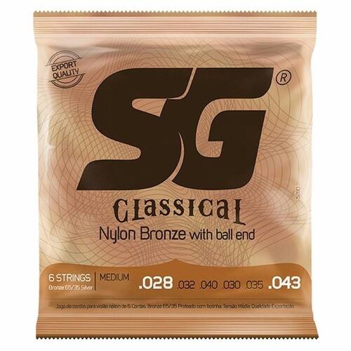 Nylon Bronze 65 35/Prata Tensão Média para violão com bolinha Origem: Fabricação Categoria: Acessórios de Corda Marca: SG Strings Produto: Encordoamento Para Violão Código: 5280 Código: 5280 Garantia: 3 meses.