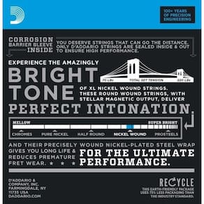 As cordas para guitarra D'addario 009 EXL120B apresentam grande flexibilidade e um timbre forte, sendo um padrão para muitos guitarristas de todos os gêneros e estilos musicais - são leves e proporcionam muito conforto para tocar. Fabricadas nos Estados Unidos, as cordas D'addario EXL120B são feitas de aço banhado a níquel e enroladas com precisão ao redor de uma alma hexagonal, resultando em uma corda com inconfundível timbre brilhante e excelente afinação. Produto Legítimo, fabricado nos Estados Unidos e com identificação do importador oficial impressa na embalagem. Acompanha como uma corda MI ( 1) extra. Medidas das cordas : 009, 011, 016, 024. 032. 042. Conteúdo de Embalagem : 01 Encordoamento. Dimensões ( L x A x P ): 11 x 12,5 x 3cm. Peso : 0,400g. Garantia de 90 dias contra defeitos de fabricação. Fotos ilustrativas. Descrição técnica fornecida pelo fabricante e podendo ser alterada sem aviso prévio.