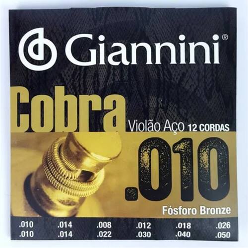 DESCRIÇÃO: As crodas GIANINI são produzidas com rigoroso controle de qualidade que assegura o tom, a durabilidade e consistência. Timbre claro e sensação confortável. Ideal para violonista iniciantes. Você merece estas cordas. ESPECIFICAÇÃO: Cordas com alma de aço Revestimento em fósforo bronze Calibres: (A) .010 .014 .008 .012 .018 .026 (B) .010 .014 .022 .030 .040 .050
