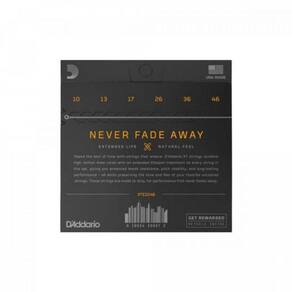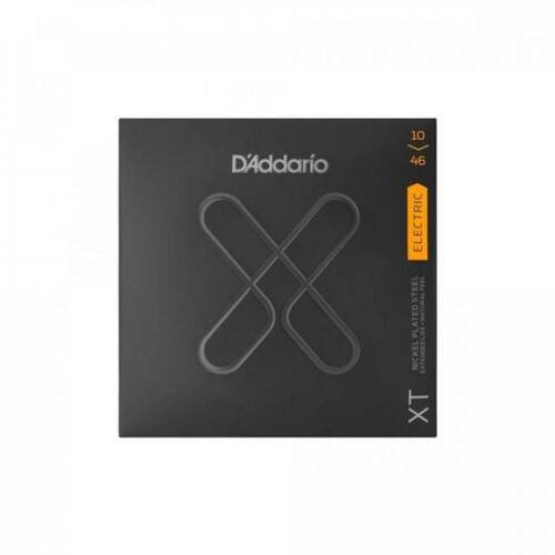 Encordoamento para Guitarra .010 Nickel Plated Steel XT D Addario Alta durabilidade sem sacrificar o timbre. Finalmente cordas de alta durabilidade que não tem som de cordas revestidas. Durabilidade 4 vezes maior que das cordas tradicionais, sem sacrificar o timbre e feeling natural de cordas não revestidas, que os músicos conhecem e adoram. Durabilidade no timbrre e na pegada. As cordas XT recebem um revistimento ultrafino para uma durabilidade surreal que preserva a pegada de cordas novas e o timbre natural. Vida prolongada para todas as cordas do set. Revestimento ultrafino que protege todas as cordas do set, não apenas os bordões, dos efeitos corrosivos do suor e umidade. Maior resistência + estabilidade de afinação. Feitas com o mesmo aço com alta concetração de carbono encontrada na NYXL e NB. As cordas XT proporcionam maior resistência à quebra e estbilidade de afinação. Qualidade D Addario. Do desenho do fio ao revestimento ultrafino, cada etapa do processo de fabricação das cordas XT é contolada, garantindo que cada set atenda aos padrões D Addario de qualidade.Aplicação:Guitarra Tensão:.010 - .046 Leve Pesquisa:encordamento|nickel|plated|0.10|10|010|dadario|