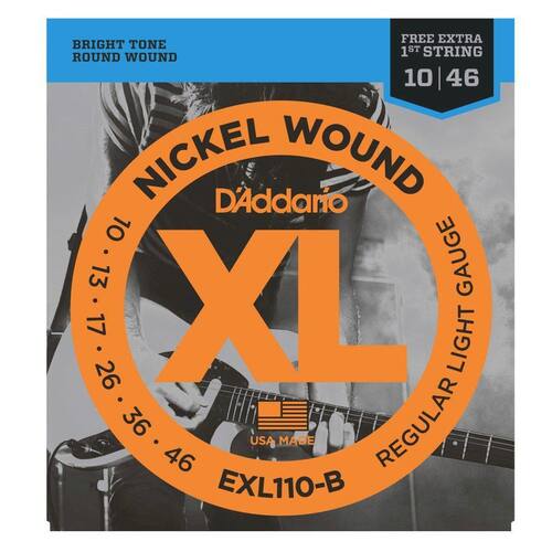 Encordoamento Guitarra Daddario Exl110 010 Mi Extra As exl110 -b com corda 1 mi extra, são as mais vendidas na daddario. Proporcionam uma combinação ideal de timbre, flexibilidade e durabilidade. Um padrão para maioria das guitarras.
