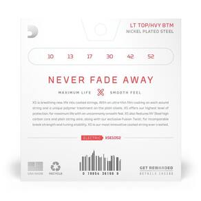 A D Addario XS para guitarra representa o início de uma nova era em cordas revestidas. Com seu revestimento ultrafino em cada corda espiralada e tratamento de polímero exclusivo nas cordas lisas, a XS oferece durabilidade extrema com o mais alto nível de proteção, além de um toque surpreendentemente suave. Nossa exclusiva tecnologia Fusion Twist reduz o atrito da corda com o nut, assim você passa mais tempo tocando e menos tempo afinando. O consagrado núcleo NY D'Addario, com alta concentração de carbono, produz resistência e estabilidade de afinação incomparáveis. XS é a corda revestida mais inovadora já criada.