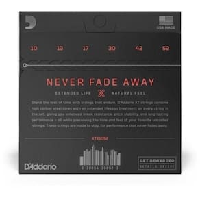 Encordoamento Guitarra Revestido Hibrido Xt Nickel O Encordoamento Para Guitarra D Addario XTE1052 XT é a escolha líder de mercado para músicos exigentes. Suas cordas apresentam um núcleo robusto de aço de alto carbono, combinado com um revestimento ultrafino que não apenas oferece durabilidade excepcional, mas também proporciona uma tocabilidade suave e confortável. Este modelo é reconhecido por sua resistência, garantindo uma longa vida útil mesmo em condições de uso intensivo. Além disso, destaca-se pela estabilidade de afinação, assegurando um desempenho consistente em todas as situações musicais. A DAddario desde de 1974 se preocupa em entregar produtos de extrema qualidade em cordas para instrumentos musicais, mas também a marca distribui outros acessórios musicais sob outras marcas. Aplicação:Guitarra Tensã Revestimento:Núcleo de aço de alto carbono com revestimento ultrafino Pesquisa:encordoamento|D Addario|guitarra|encordoamento guitarra